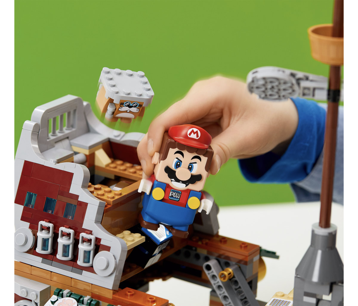 Il veliero può essere usato in 2 differenti modalità: aperto in “modalità volo” o ripiegato in “modalità rotta”. Dovrai superare diverse sfide come la mano meccanica di Bowser e un blocco POW per far apparire una Tartatalpa dal suo nascondiglio.